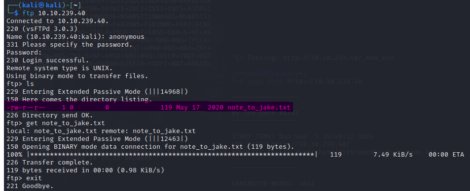 The nmap output shows that the anonymous ftp login is turned on. let's log in.