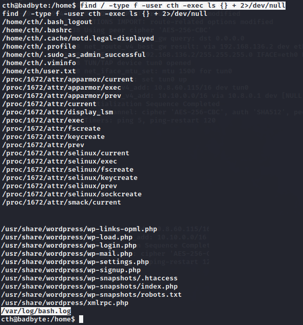 find / -type f -user cth -exec ls {} + 2>/dev/null