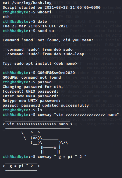 The script ran while looking at the contents of the file. We see the user's old password. and the script changes the user's password.