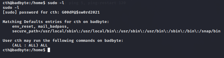With the sudo -l command, we see that the user can run everything with the sudo command.