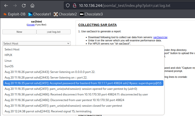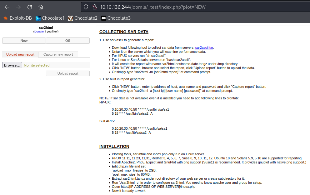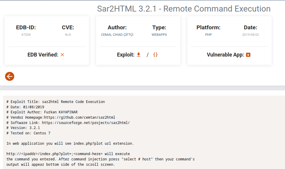 When doing a short search on Google for sar2html, we can see that there is an exploit.