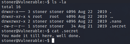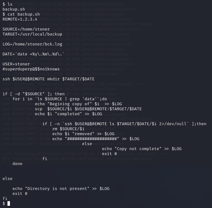 When we read it with the "cat" command, the USER=stoner line draws our attention. and the password is on the bottom line.