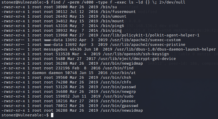 find / -perm /4000 -type f -exec ls -ld {} \; 2>/dev/null