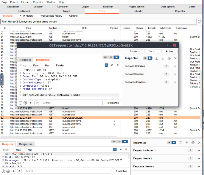 Using the in-built browser, make a request to http://MACHINE_IP/ and capture it in the proxy.