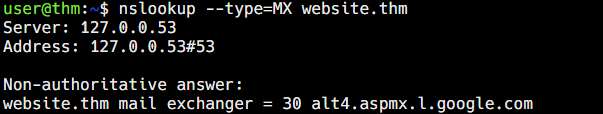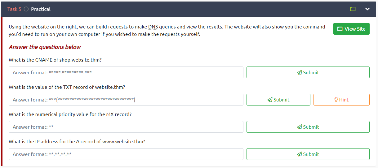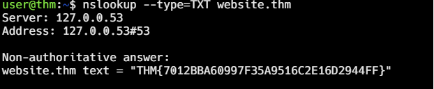 What is the value of the TXT record of website.thm?