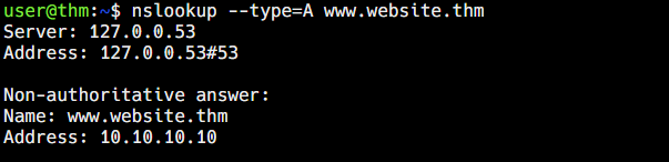 What is the IP address for the A record of www.website.thm?