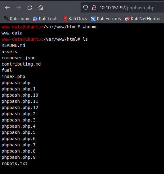 I shared phpbash from the host and opened it on the website.